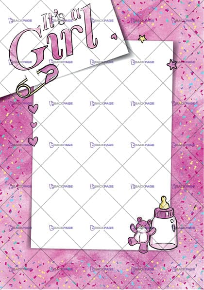 רקע וורוד בקבוק ודובי וכיתוב its a girl