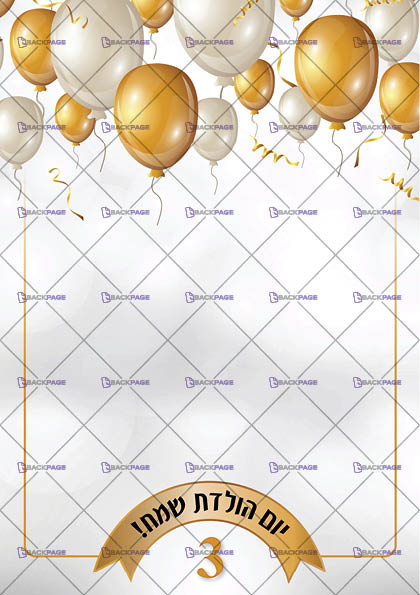 יום הולדת 3 עם בלונים בגווני הכסף-זהב
